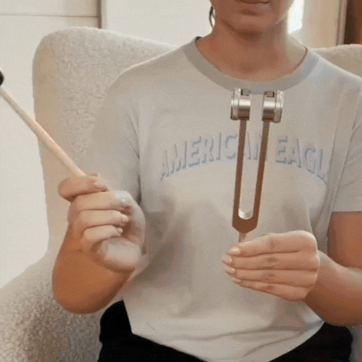 Place the tuning fork on the area you want to treat. It's designed to work on joints, muscles, nerves, and bones for instant relief.