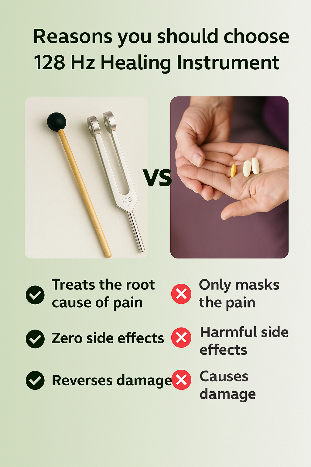 The 128 Hz Healing Instrument provides targeted relief through deep, soothing vibrations that improve blood flow and release soreness. By reducing inflammation and promoting relaxation, it can offer natural relief from chronic pain and everyday discomfort.